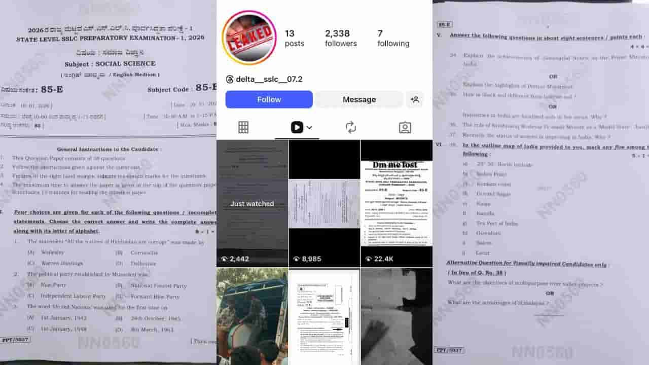 ಸಮಾಜ ವಿಜ್ಞಾನ ಪರೀಕ್ಷೆಯ ಪ್ರಶ್ನೆಪತ್ರಿಕೆ ಪರೀಕ್ಷೆ ಆರಂಭಕ್ಕೂ ಮುನ್ನವೇ ಸಾಮಾಜಿಕ ಮಾಧ್ಯಮಗಳಲ್ಲಿ ಹರಿದಾಡಿದ್ದು, ವಿದ್ಯಾರ್ಥಿಗಳು ಹಾಗೂ ಪೋಷಕರಲ್ಲಿ ಗೊಂದಲ ಉಂಟಾಗಿದೆ. “ಡೆಲ್ಟಾ ಎಸ್ಎಸ್ಎಲ್ ಸಿ” ಎಂಬ ಇನ್ಸ್ಟಾಗ್ರಾಂ ಖಾತೆಯಿಂದ ಪ್ರಶ್ನೆಪತ್ರಿಕೆ ವೈರಲ್ ಆಗಿರುವುದು ಬೆಳಕಿಗೆ ಬಂದಿದೆ. ಈ ಖಾತೆ ಪ್ರತಿವರ್ಷವೂ ಪರೀಕ್ಷೆ ಸಮಯದಲ್ಲಿ ಸಕ್ರಿಯವಾಗುತ್ತಿದ್ದು, ಕಳೆದ ವರ್ಷವೂ ಇದೇ ಖಾತೆಯಿಂದ ಪ್ರಶ್ನೆಪತ್ರಿಕೆ ಸೋರಿಕೆಯಾದ ಆರೋಪಗಳು ಕೇಳಿಬಂದಿದ್ದವು. ಆದರೂ, ಈ ಬಗ್ಗೆ ಪರೀಕ್ಷಾ ಮಂಡಳಿ ಅಧಿಕಾರಿಗಳು ಸಮರ್ಪಕ ಕ್ರಮ ಕೈಗೊಂಡಿಲ್ಲ ಎಂಬ ಟೀಕೆಗಳು ಕೇಳಿಬರುತ್ತಿವೆ.