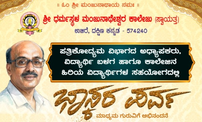 ಉಜಿರೆ: Tulu Times | ಜ. 31 ರಂದು ಉಜಿರೆ ಎಸ್ ಡಿ ಎಂ ಕಾಲೇಜಿನಲ್ಲಿ ಪತ್ರಿಕೋದ್ಯಮ ವಿಭಾಗದ ಮುಖ್ಯಸ್ಥರಾದ ಡಾ. ಭಾಸ್ಕರ ಹೆಗಡೆ ಅವರಿಗೆ ಅಭಿನಂದನಾ ಕಾರ್ಯಕ್ರಮ ನಡೆಯಲಿದೆ.