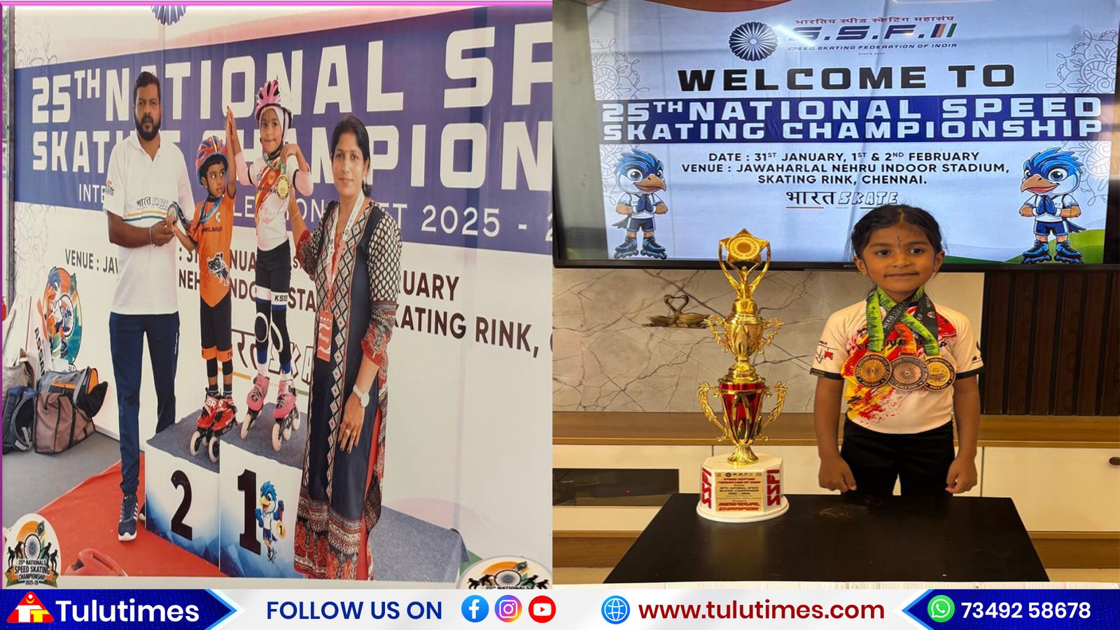 ತುಳುಟೈಮ್ಸ್ | ಚೆನ್ನೈನಲ್ಲಿ ನಡೆದ ಎಸ್ ಎಸ್ ಎಫ್ ಐ 25ನೇ ರಾಷ್ಟ್ರೀಯ ಮಟ್ಟದ ಸ್ಪೀಡ್ ಸ್ಕೇಟಿಂಗ್ ಚಾಂಪಿಯನ್ ಶಿಪ್ ನಲ್ಲಿ,ಅದ್ವಿತ ಗುರುಪ್ರಸಾದ್ ಶೆಟ್ಟಿಗಾರ್ ಚಿನ್ನದ ಪದಕ ಗಳಿಸಿದ್ದಾರೆ.