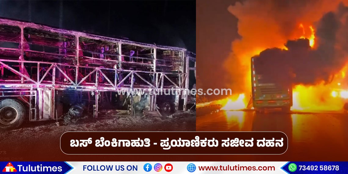 Hyderabad: ಆಂಧ್ರಪ್ರದೇಶದಿಂದ ಬೆಂಗಳೂರಿಗೆ ಹೊರಟಿದ್ದ ಬಸ್ಸೊಂದು ಬೆಂಕಿಗಾಹುತಿಯಾದ ದಾರುಣ ಘಟನೆ ನಡೆದಿದೆ. ಕಾವೇರಿ ಟ್ರಾವೆಲ್ಸ್ನ ವೋಲ್ವೊ ಬಸ್ ಬೆಂಕಿಗಾಹುತಿಯಾಗಿ 20ಕ್ಕೂ ಹೆಚ್ಚು ಪ್ರಯಾಣಿಕರು ಸಾವನ್ನಪ್ಪಿದ್ದಾರೆ ಎನ್ನುವ ಮಾಹಿತಿ ಲಭ್ಯವಾಗಿದೆ.